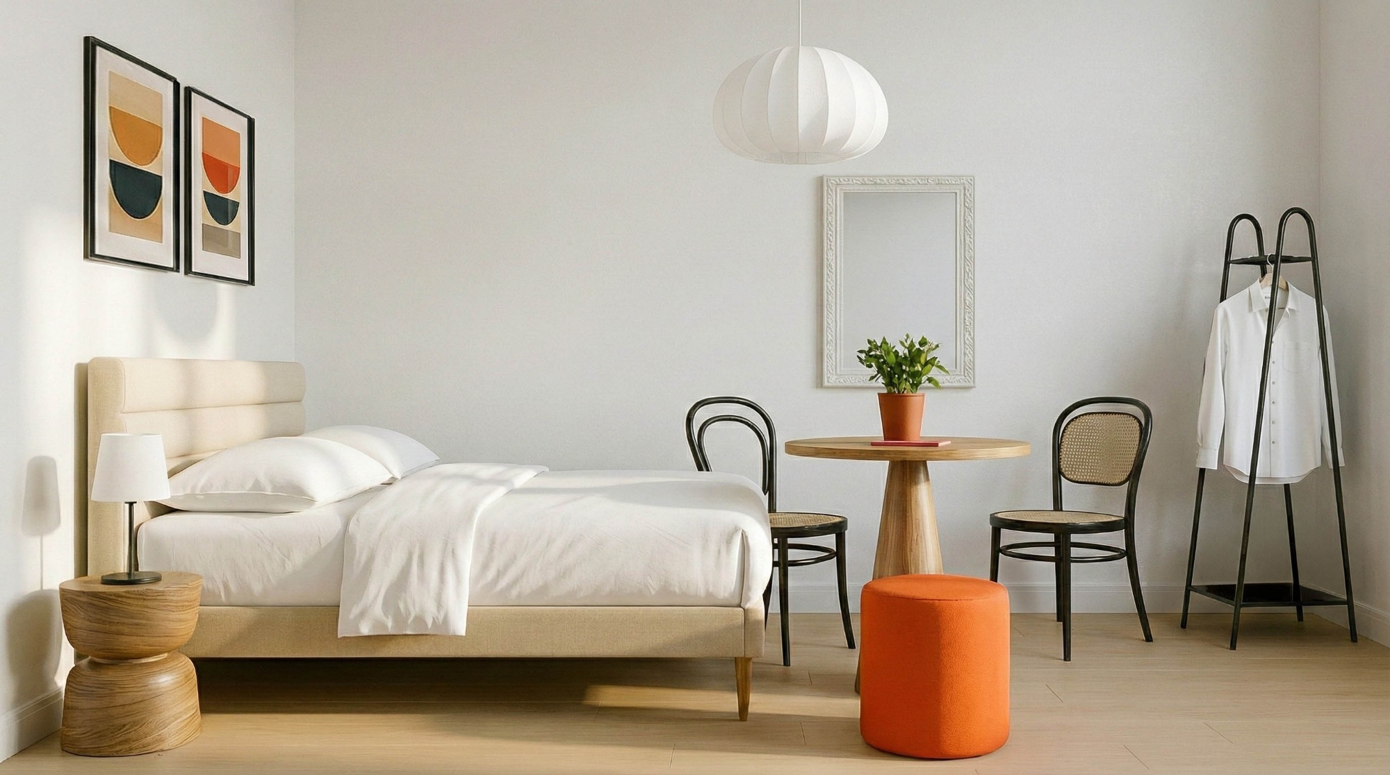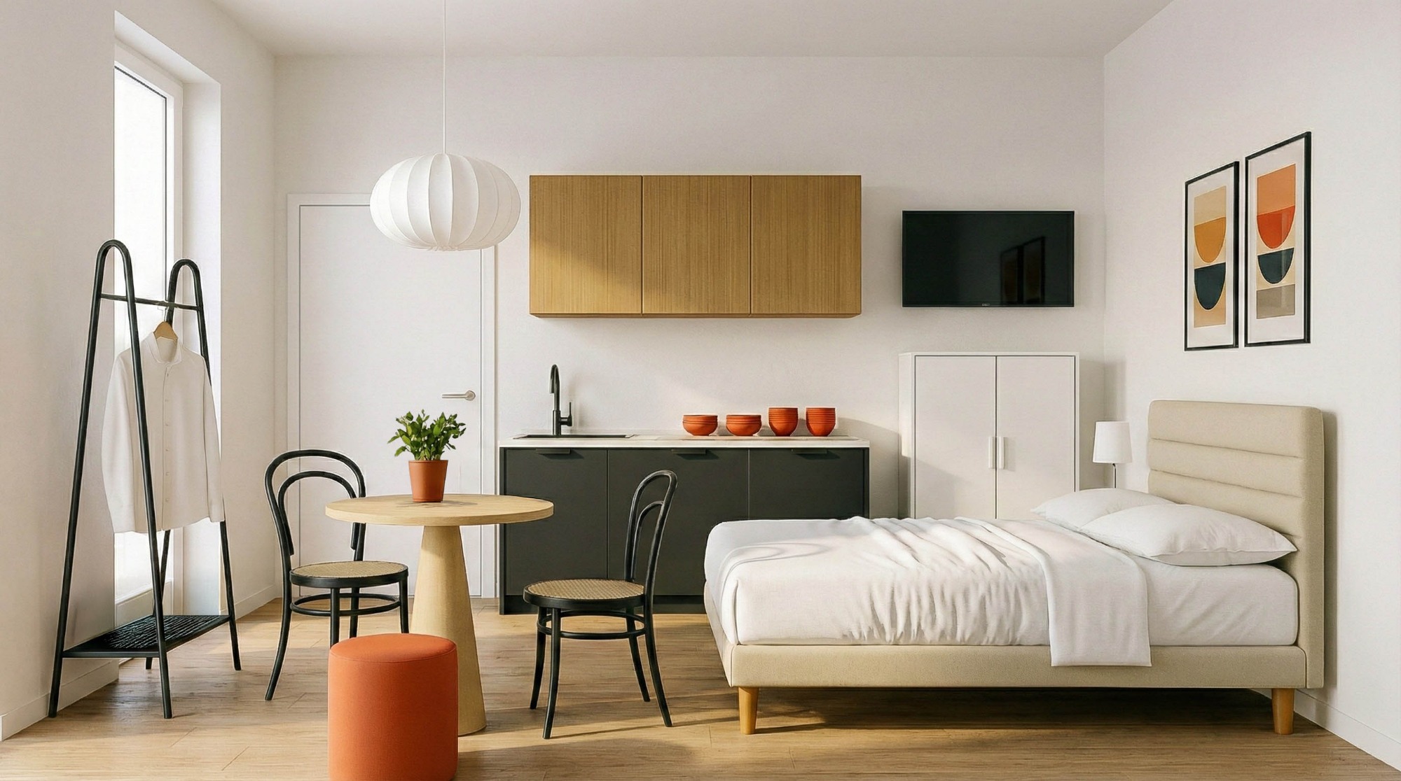 Klar strukturierte Grundrisse, gezielte Farbakzente und ausgewählte Möbel machen aus wenig Raum ein stimmiges Ganzes – reduziert, aber gemütlich und praktisch.