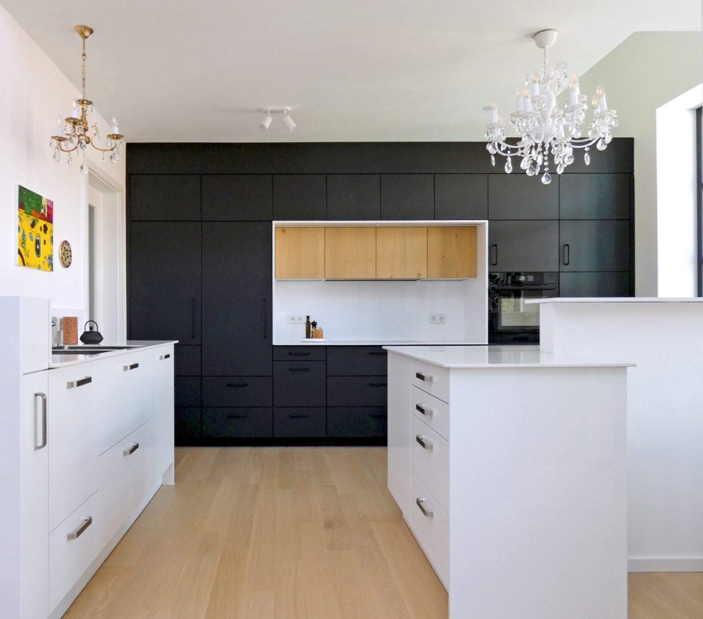 In der Küche spielt Funktionalität eine besonders große Rolle. Deshalb wurde der Küchenentwurf recht lange und sehr sorgfältig ausgearbeitet. Von der gesamten Küchenschrankplanung bis in die Details wie die Höhe einzelner Auszüge und ihrem Innenleben hat die Interiordesignerin alles selbst geplant und gezeichnet.